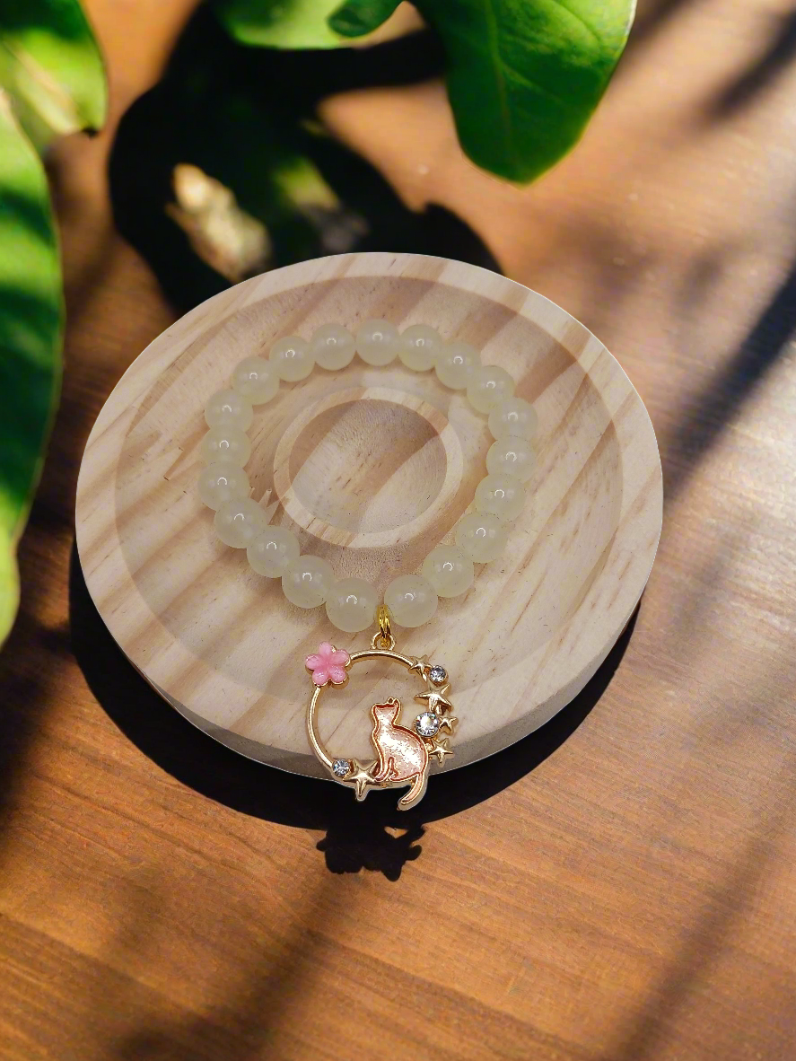 Experience the purrfect blend of style and sophistication with our Cosmic Cat Collection #1. Our handcrafted pink glass beads add a whimsical touch to any outfit, making a statement that is out of this world. Embrace your feline charm and add a little sparkle to your day.