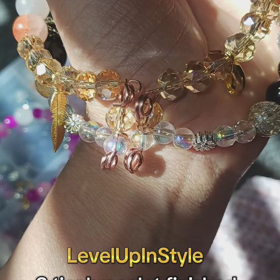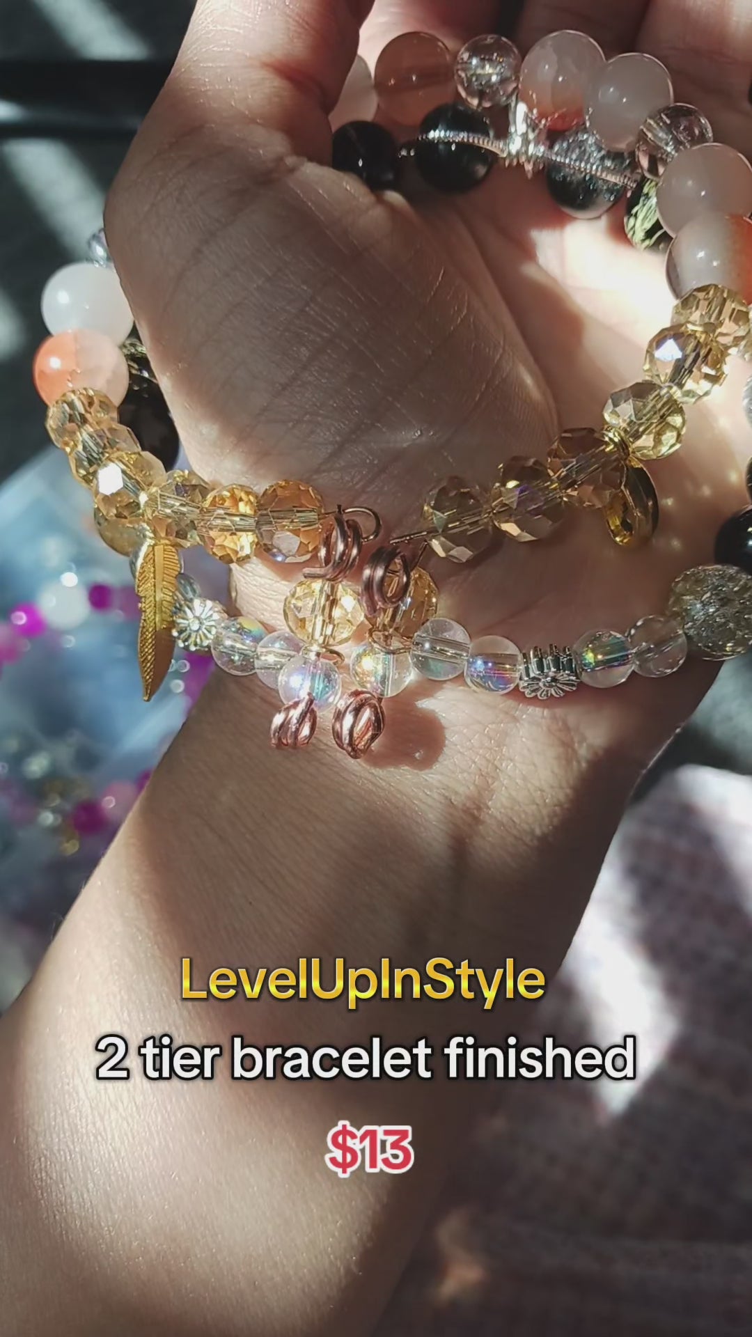 Elevate your style with our 2 tier bracelet. Indulge in the beauty of handcrafted glass beads and matching spacers, adorned with a copper twist detail. Perfectly complement any outfit with a touch of sparkle and sophistication.